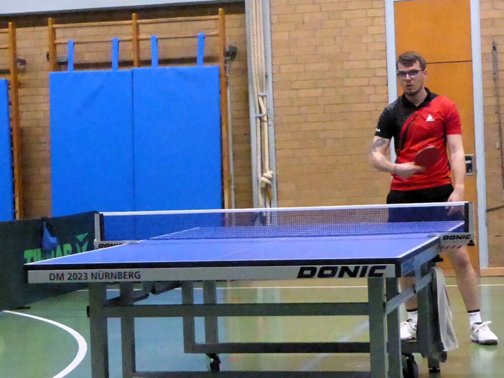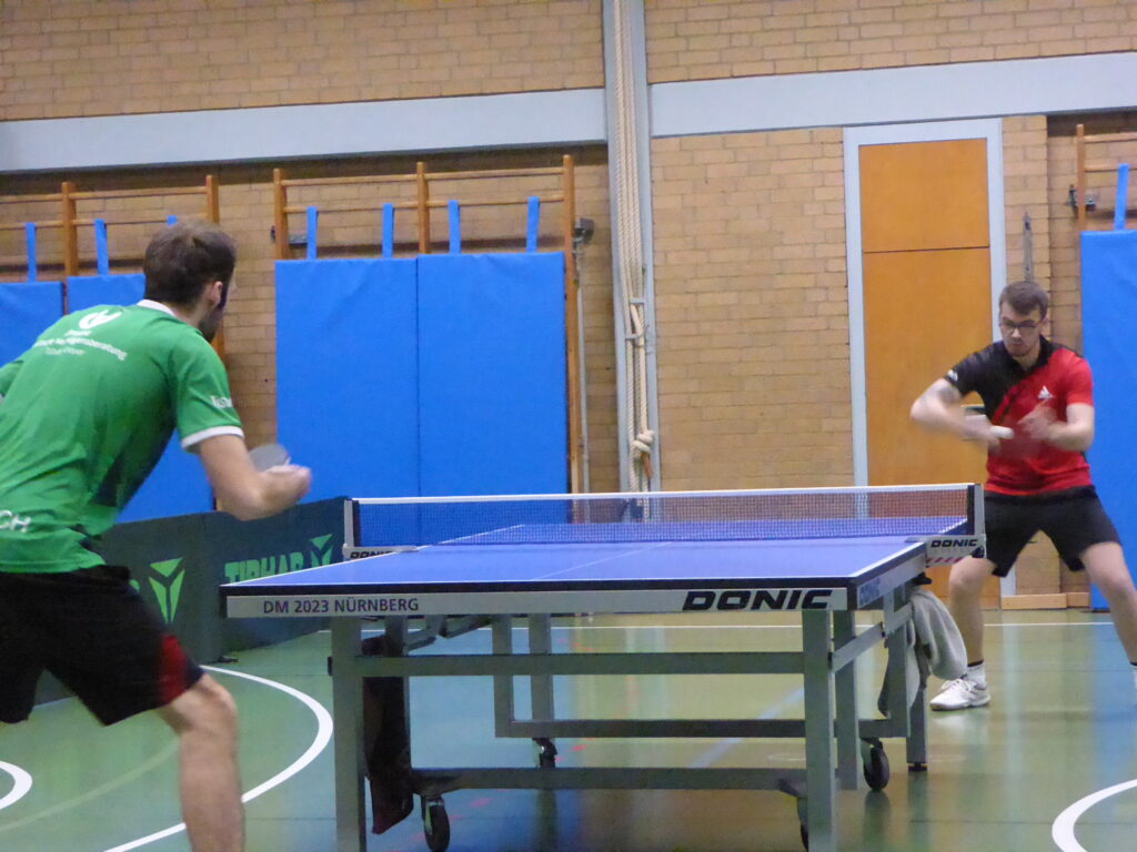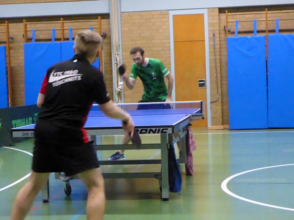 Viel Kraft und Energie benötigte auf der Nebenplatte Chris gegen Thomas Will. Thomas ist ein Gegner gegen den man jeden Punkt selbst machen muss weil er einfach alles zurück bringt und zwischendurch auch noch selbst mit starken Angriffsbällen glänzt. Aber kämpfen bis zum letzten Ball ist die DNA von Chris, was er auch diesmal wieder eindrucksvoll unter Beweis stellte. Nach vier ausgeglichenen Sätzen schaffte er es im Entscheidungssatz noch einmal zuzulegen und mit einem starken 11:4 den ersten Punkt für uns einzufahren!