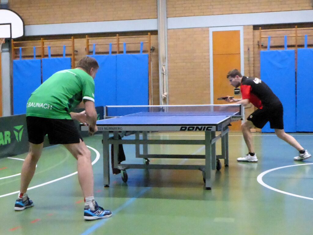 Im Spitzenspiel zwischen dem Tabellenführer Baunach und dem Dritten Tüschnitz konnte sich der Aufsteiger erfolgreich für die Niederlage im Hinspiel revanchieren. Allerdings fiel die Niederlage doch etwas zu hoch aus, denn drei verlorene Entscheidungssätze hätten durchaus auch anders enden können. Bei den Hausherren blieben Vater und Sohn Waßmann ungeschlagen während bei uns Chris und Tom im Einzel punkten konnten.