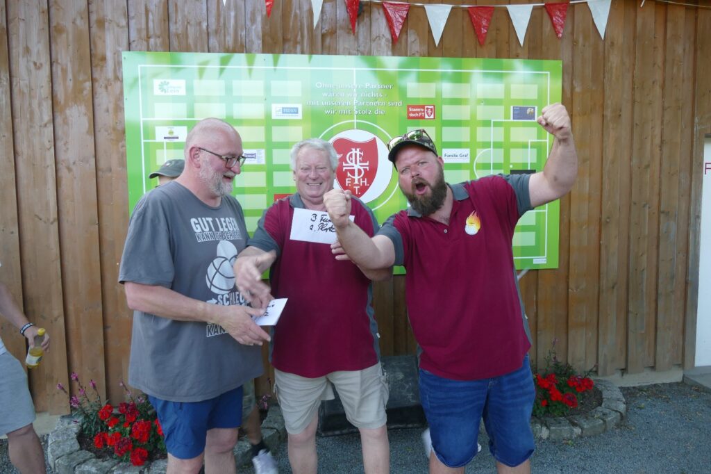 Ob es an Fränkies Bestechungsversuchen lag, der jedem Gegner zu Spielbeginn versprach, diesen bei einer Niederlage zu einem Freibier einzuladen? Dieses Mysterium wird wohl nie vollständig aufgeklärt werden können – aber unser Boule-Aushängeschild hielt jedenfalls Wort und war gern gesehener Gast bei der Getränkeausgabe. Zum Schluss wurde er sogar angesichts seiner gastronomischen Unterstützung von der Wirtin mit einem Küsschen beglückt.