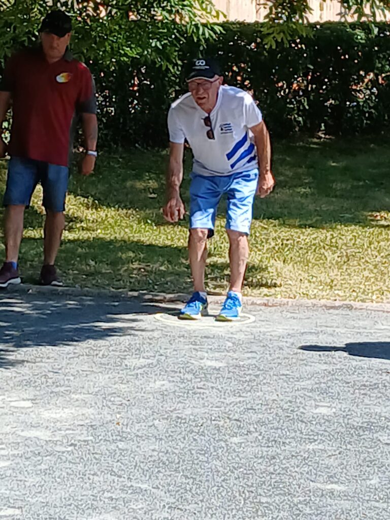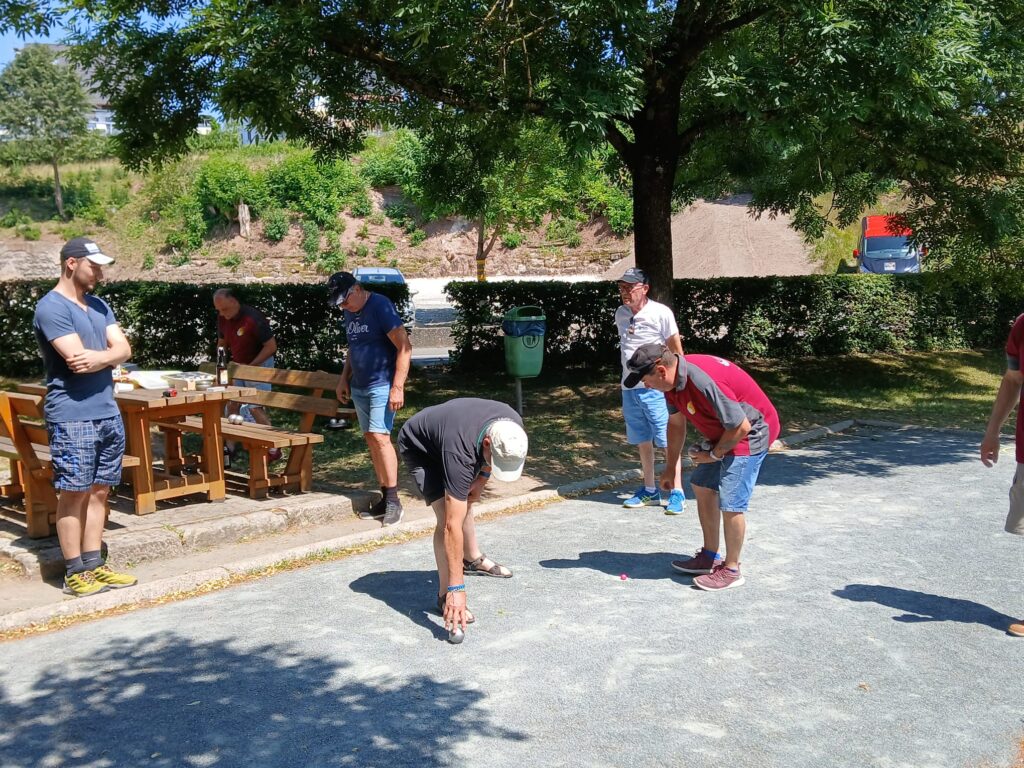 Und schon war ein Spiel für den Samstag abgesprochen. Vier der Senioren aus Plouay kamen zum Spielfeld. Mit vier länderübergreifenden Teams flogen die Kugeln nur so. Trotz der sprachlichen Schwierigkeiten waren es zwei schöne Stunden des gemeinsamen Spiels. Mit Frankenwein, einheimischen Bier sowie
